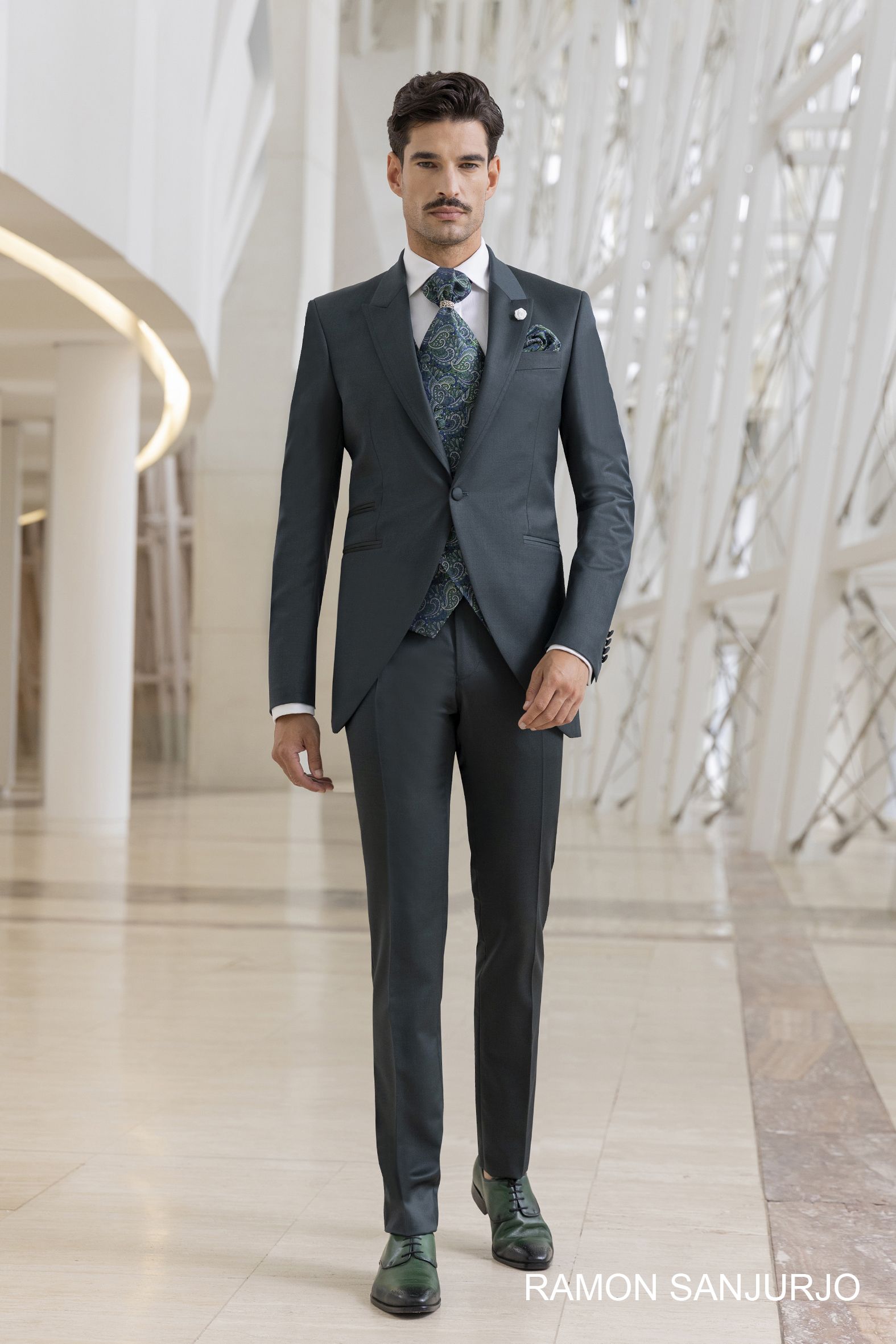 Descubre la sofisticación y el sello inconfundible de Ramón Sanjurjo. Una firma española líder en ceremonia masculina que destaca por sus tejidos exclusivos, patrones impecables y un diseño que equilibra la tradición con la modernidad. Si buscas un look de novio con distinción, elegancia atemporal y la máxima calidad en cada puntada, esta es tu elección.